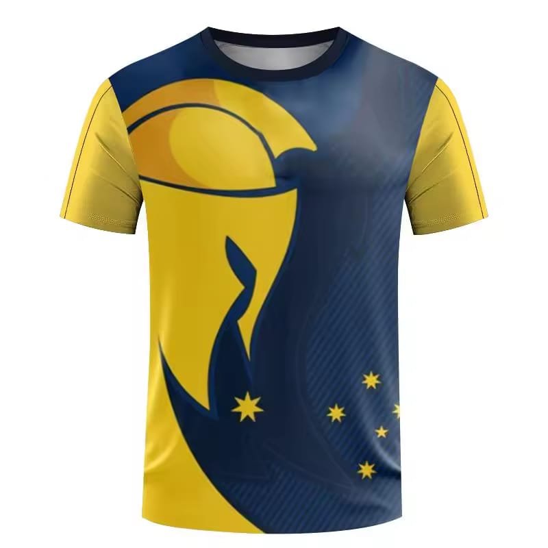 Elevate your wardrobe with our dynamic sports tee featuring bold yellow-blue graphics and striking star accents. Designed to make a statement, this tee is perfect for anyone who wants to combine vibrant fan fashion with everyday activewear. Whether you’re heading to the gym or cheering on your favorite team, this piece guarantees you’ll turn heads while staying comfortable.